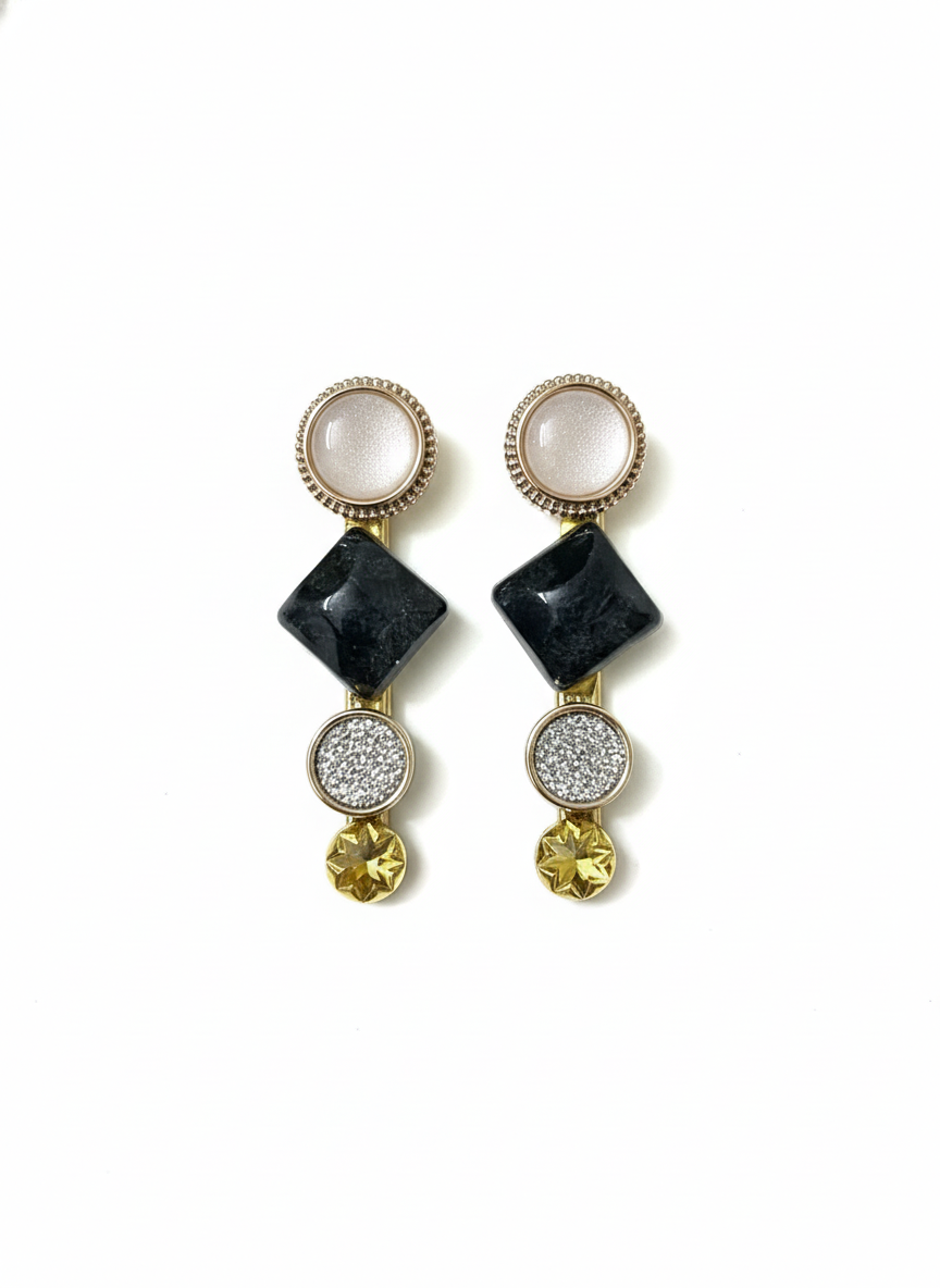Add a bold yet sophisticated touch to your hairstyle with this black and gold designer hair pin. Crafted with a striking combination of deep black geometric elements, subtle silver-textured accents, and refined gold detailing, this piece is designed to stand out while maintaining elegance.
