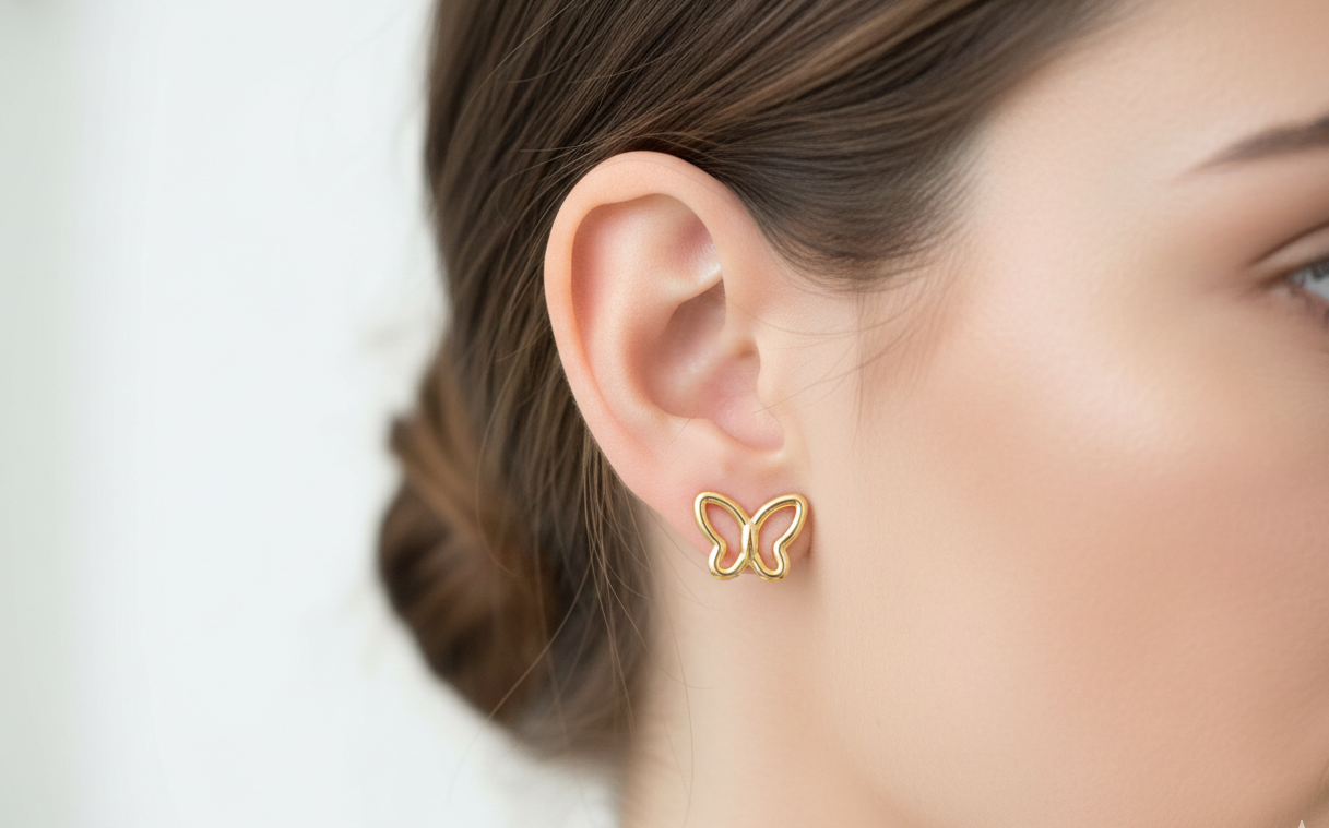 The butterfly design symbolises freedom, transformation, and grace, giving these studs a timeless and versatile appeal. Lightweight and comfortable, they sit gently on the ears without causing irritation, making them suitable for long hours of wear. The smooth edges and fine polish reflect attention to detail and premium craftsmanship.