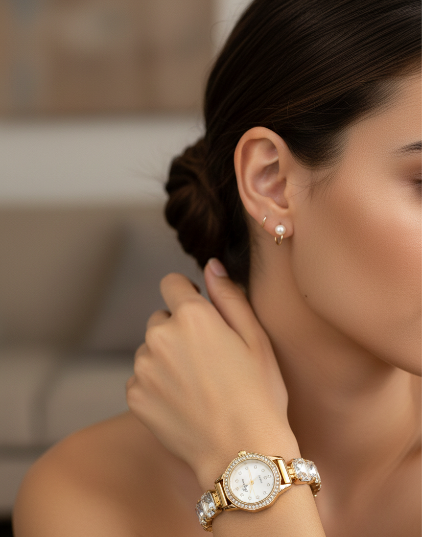 Perfect for women who love sophistication and glamour, this watch is ideal for daily elegance, special occasions, and gifting.