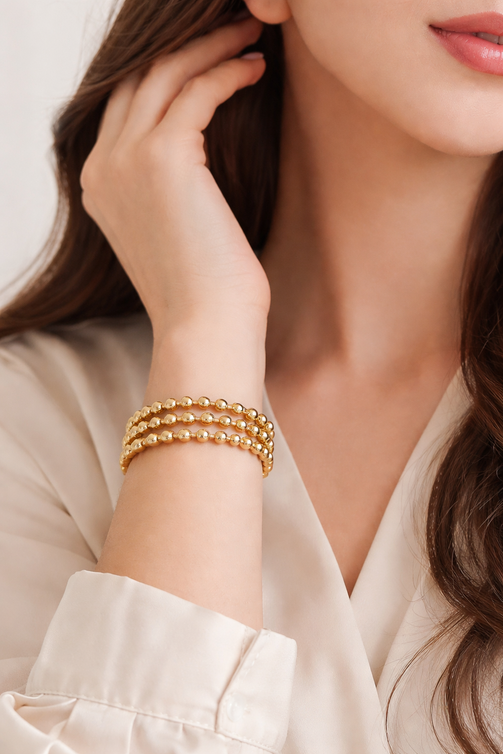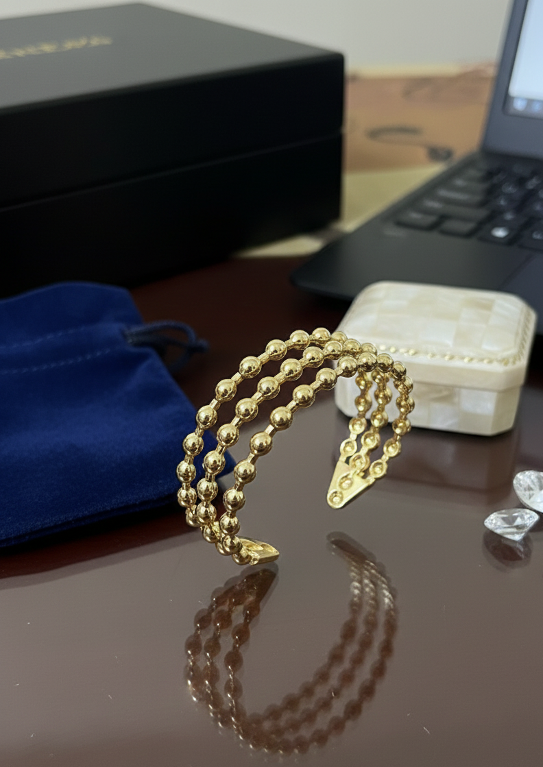 Add a touch of elegance to your jewellery collection with this premium adjustable gold plated beaded bracelet. Designed with multiple rows of smooth, polished gold-tone beads, this bracelet offers a luxurious look at an affordable price.