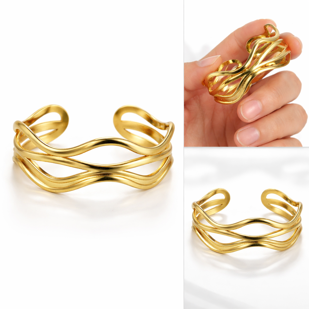 Enhance your jewellery collection with this elegant gold-finish adjustable wave cuff bracelet, designed for women who love modern and classy accessories. The flowing wave pattern gives a premium designer look, making it suitable for both traditional and western outfits.
