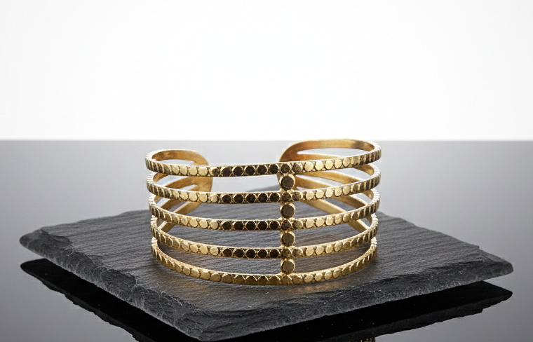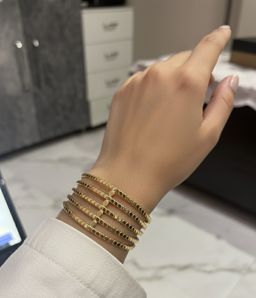 Add a touch of modern elegance to your jewellery collection with this stunning gold-tone adjustable bracelet for women. Designed with a stylish multi-layer open cuff pattern, this bracelet gives a rich, premium look while remaining lightweight and comfortable for daily wear. The adjustable open design ensures a perfect fit for different wrist sizes, making it easy to wear and remove without any hassle. Its smooth finish and intricate detailing make it suitable for both casual outfits and festive or party wear. Whether paired with ethnic attire or western dresses, this bracelet enhances your overall look with effortless grace. A perfect choice for gifting on birthdays, anniversaries, festivals, or special occasions.