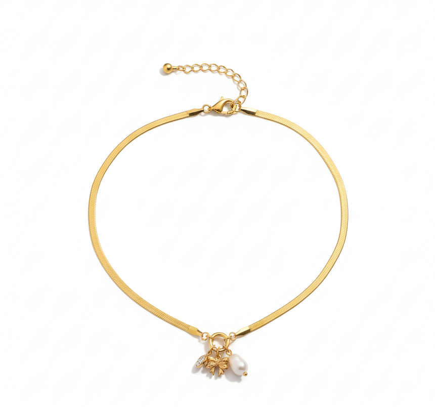 Elegant gold-finish snake chain necklace featuring a delicate pearl and charm pendant. A classy, lightweight necklace perfect for daily wear, office wear, and gifting.
