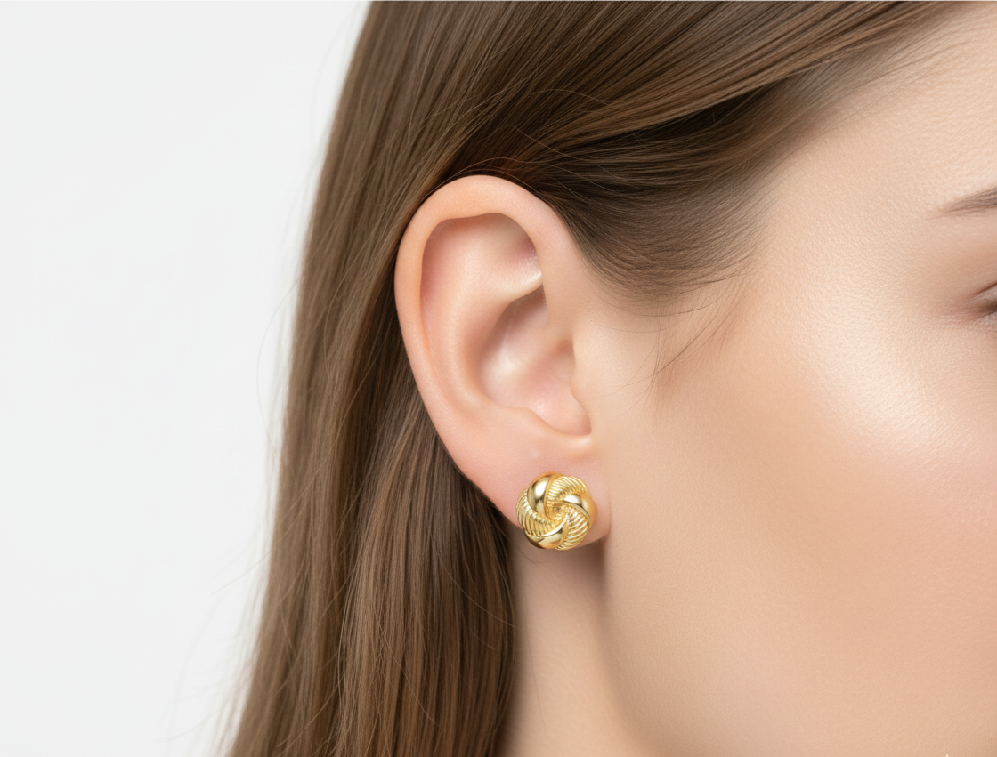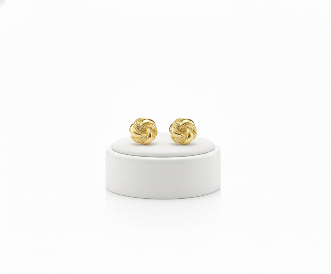 Elegant twisted knot stud earrings with a rich gold shine. Lightweight, timeless, and perfect for everyday and occasion wear.